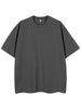 This oversized t-shirt in a deep charcoal gray presents a clean, modern aesthetic. With a classic round neckline and short sleeves, it offers a simple yet stylish silhouette.