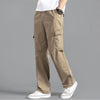 These khaki cargo pants combine practicality and style, featuring spacious side pockets and a relaxed fit. Their versatile design makes them a great addition to casual wardrobes, suitable for various occasions.